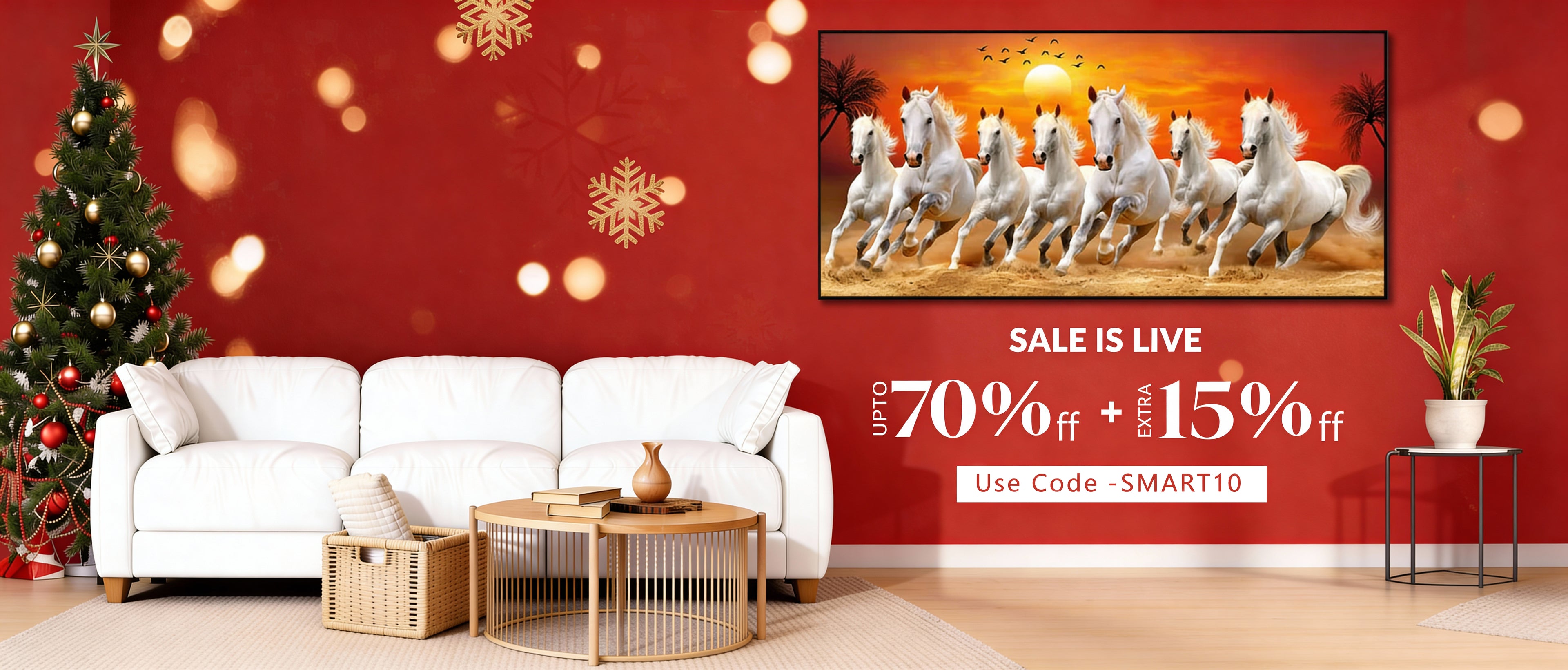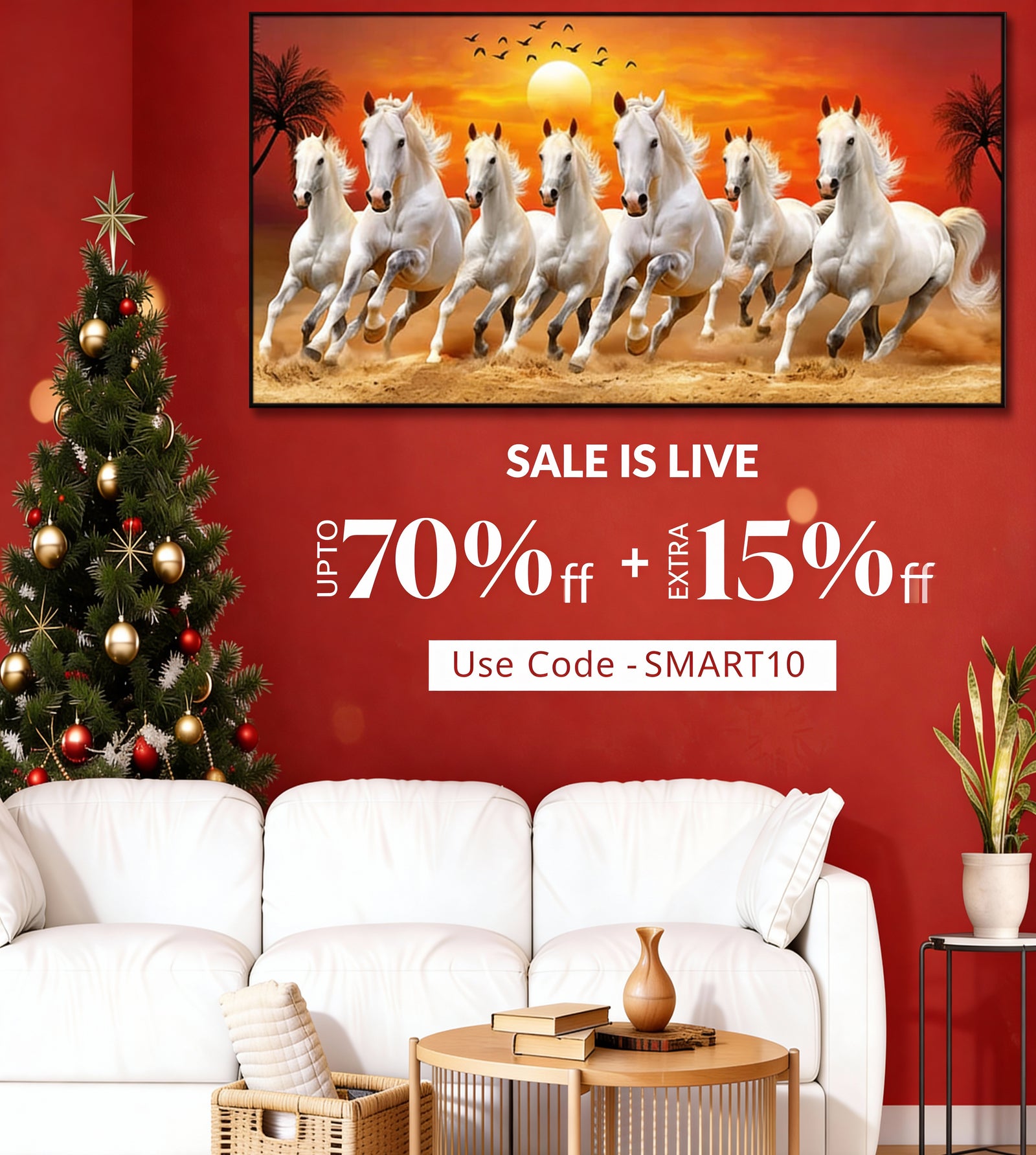 Beautiful White Seven Running Horse Premium Canvas Wall Painting