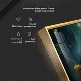 The floating wall design adds to its sophistication, giving the impression that the painting hovers seamlessly against the wall. This gallery-style presentation enhances the beauty of the piece, making it ideal for both contemporary and traditional settings.