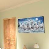 According to Vastu and Feng Shui, the Seven Running Horses Wall Painting is considered highly auspicious. The number seven represents the seven days of the week, symbolizing uninterrupted progress and success. Hanging this painting in your living room, office, or workspace is believed to attract wealth, harmony, and growth. The depiction of horses in water further enhances its positivity, signifying smooth journeys, victory over obstacles, and the flow of abundance into one’s life.